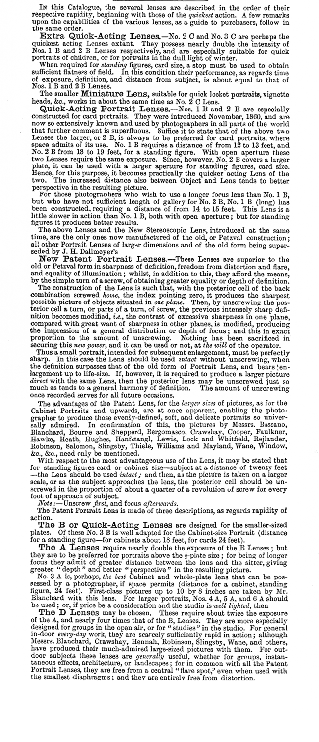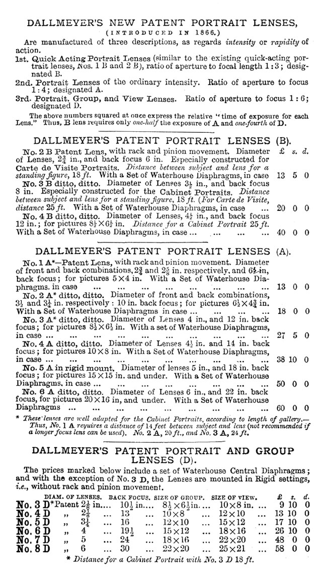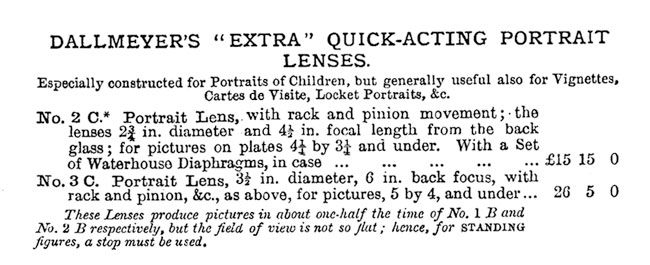The portrait lens that may prove most difficult to identify is Dallmeyer's improved Petzval, introduced in 1860 and sold throughout the nineteenth century.